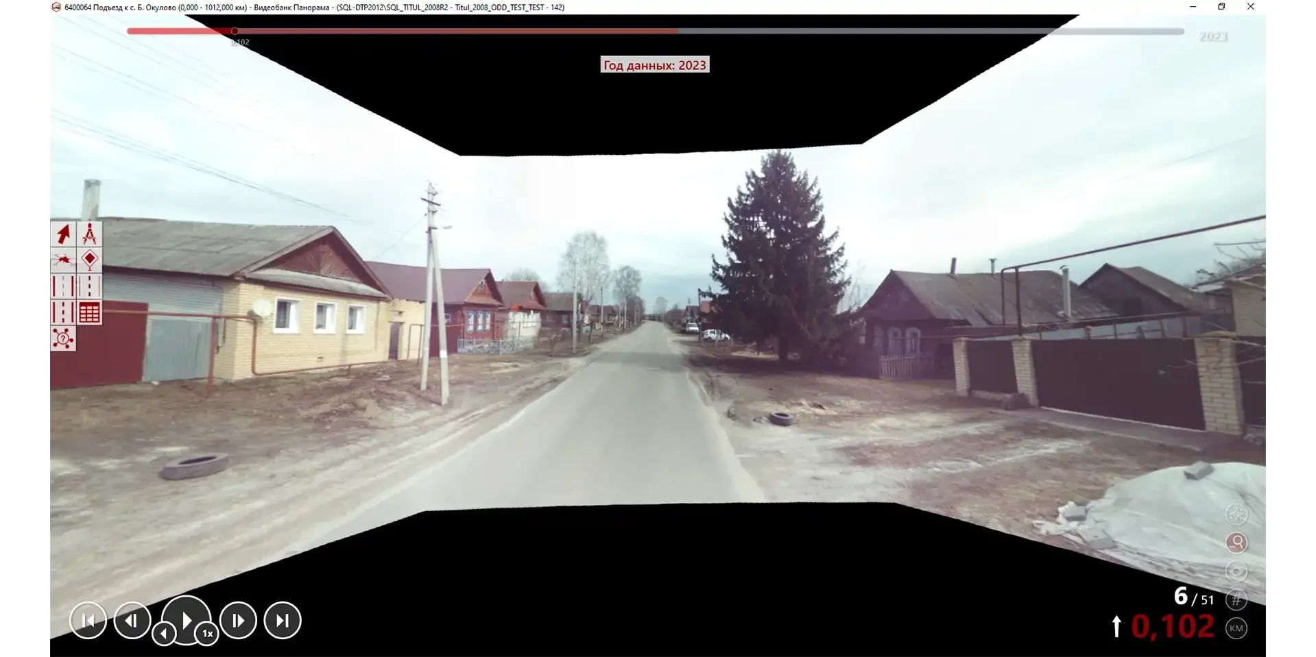 • Конвертировать видеофрагменты трёх-камерного (и более) формата в полусферическую склеенную панораму, открывая возможность заносить информацию в базу данных по видеокадру, выполняя тем самым часть полевых работ в камеральных условиях. При этом можно корректировать яркость самого видео для лучшего анализа видеофрагмента.