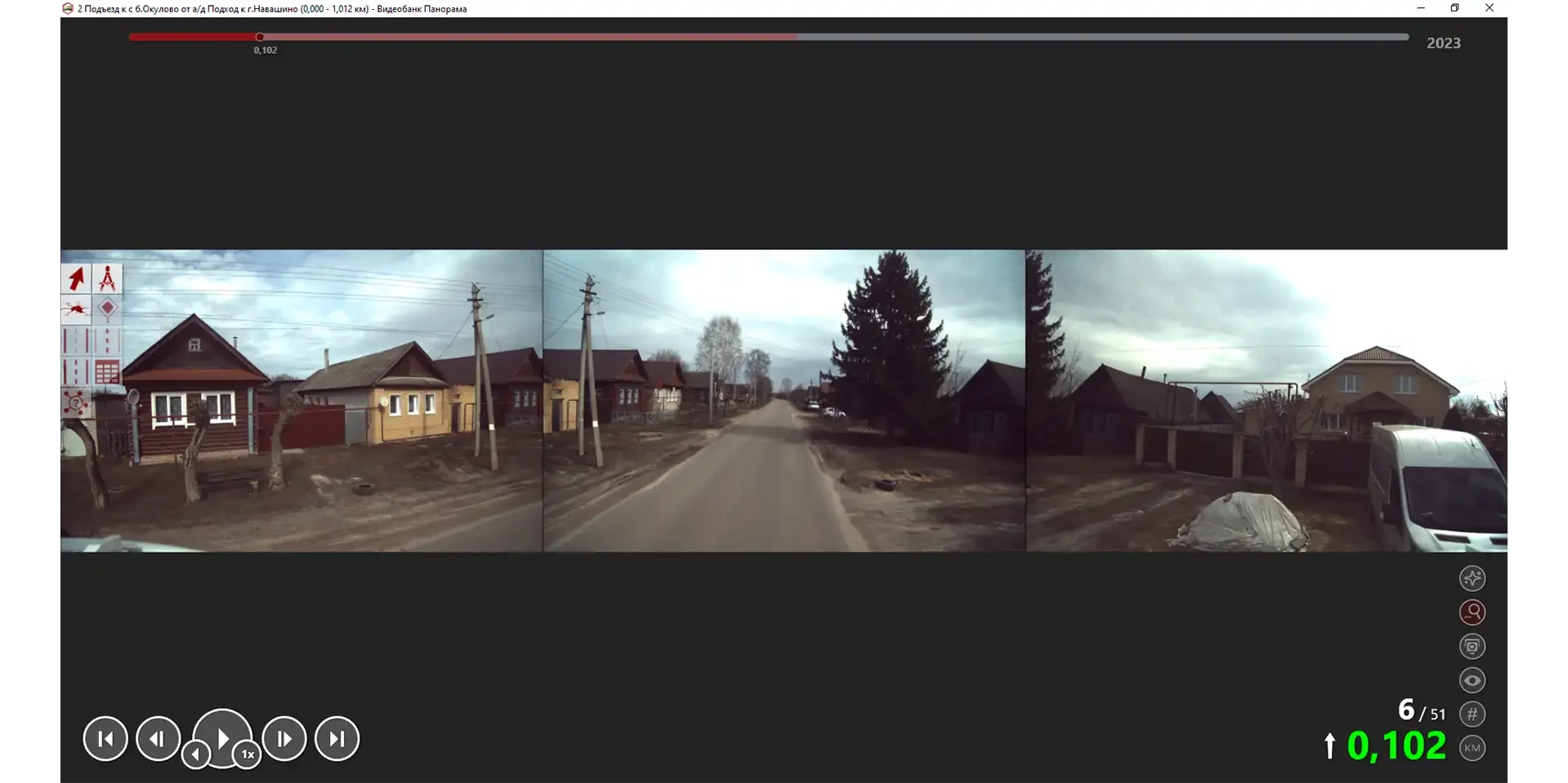 • Возможность отображать дополнительную информацию на кадре в виде пикетажа и географических координат (GPS), в том числе пикетажа от километровых столбов (КМ+МММ)