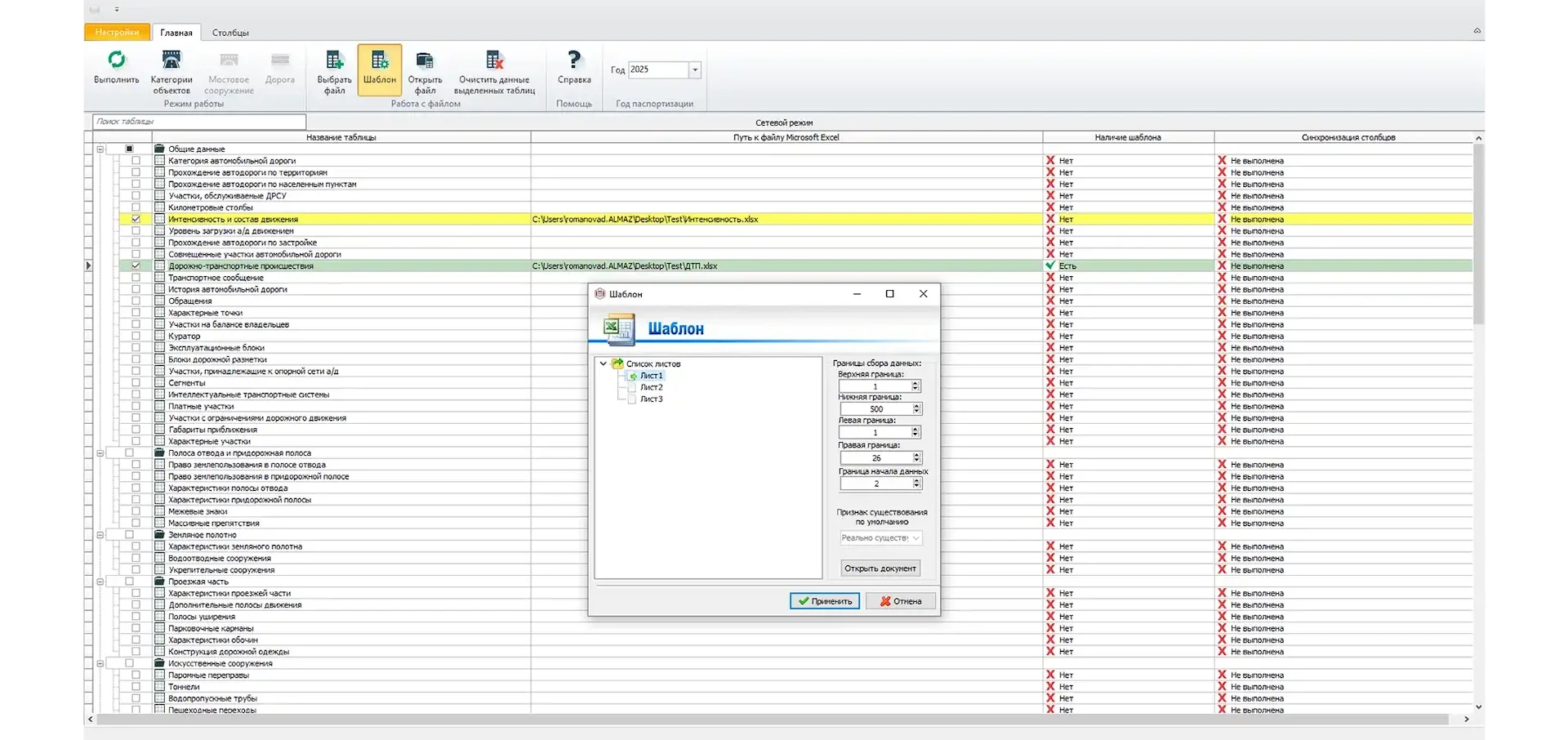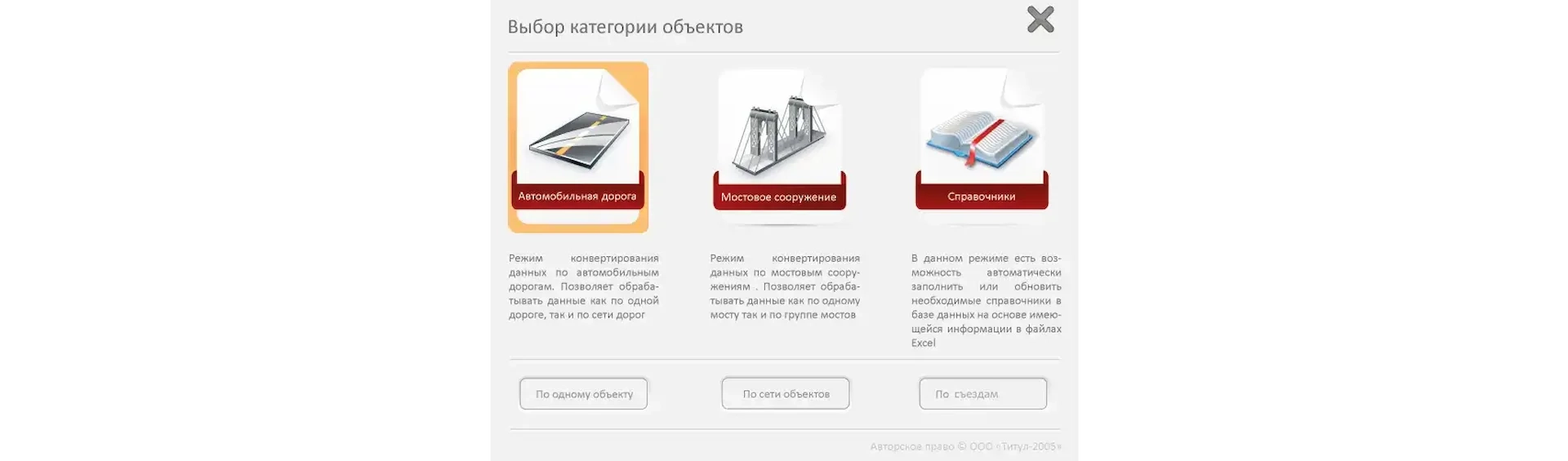 1. режим конвертирования информации в таблицы базы данных по автомобильным дорогам, а именно по одной, по сети дорог или по съездам транспортных развязок