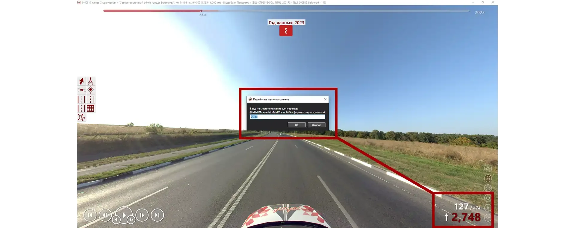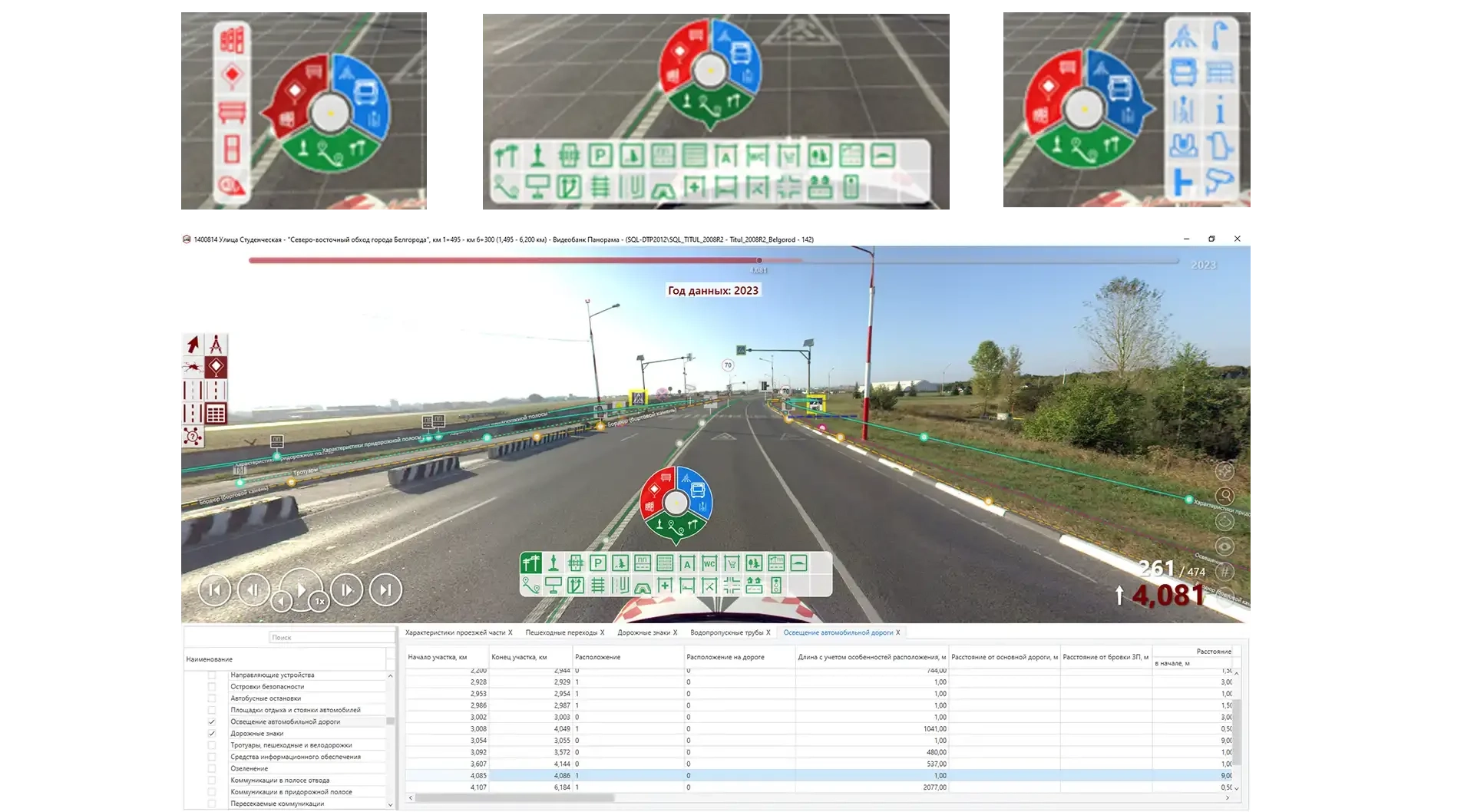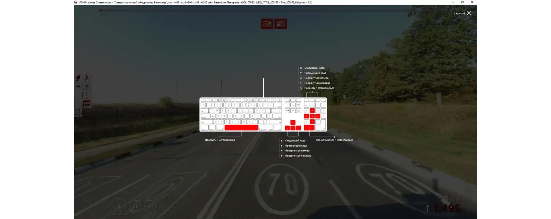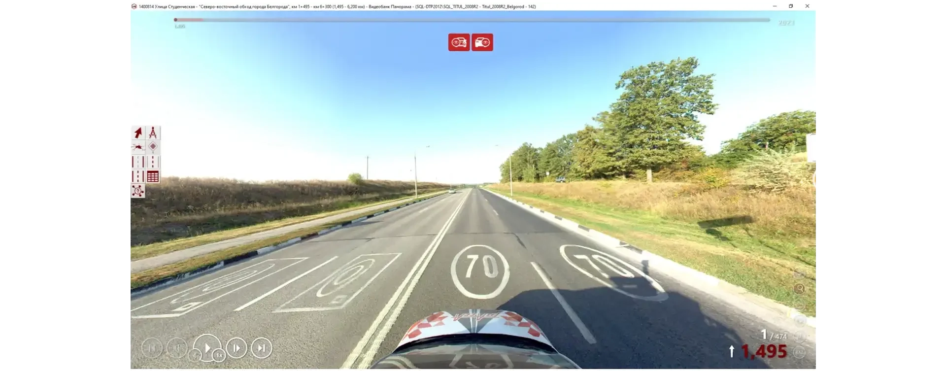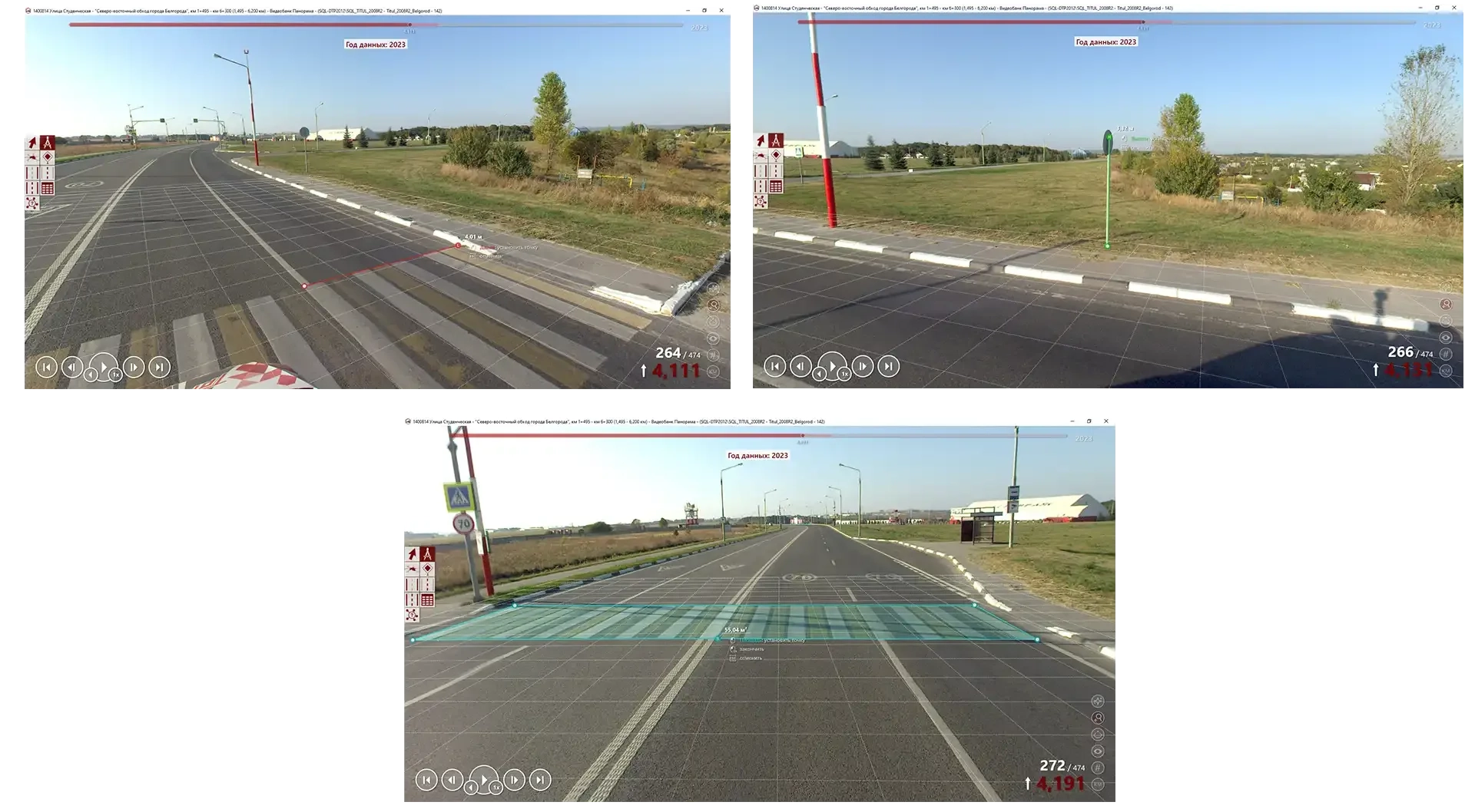 • Заносить информацию в базу данных по видеокадру, выполняя тем самым часть полевых работ в камеральных условиях, что ведёт к повышению качества и производительности обследования дорог