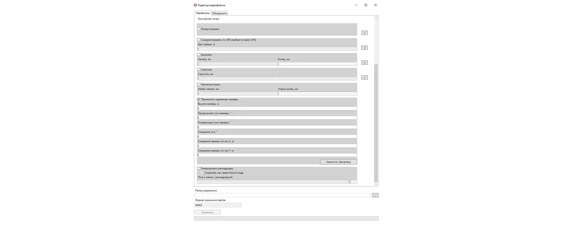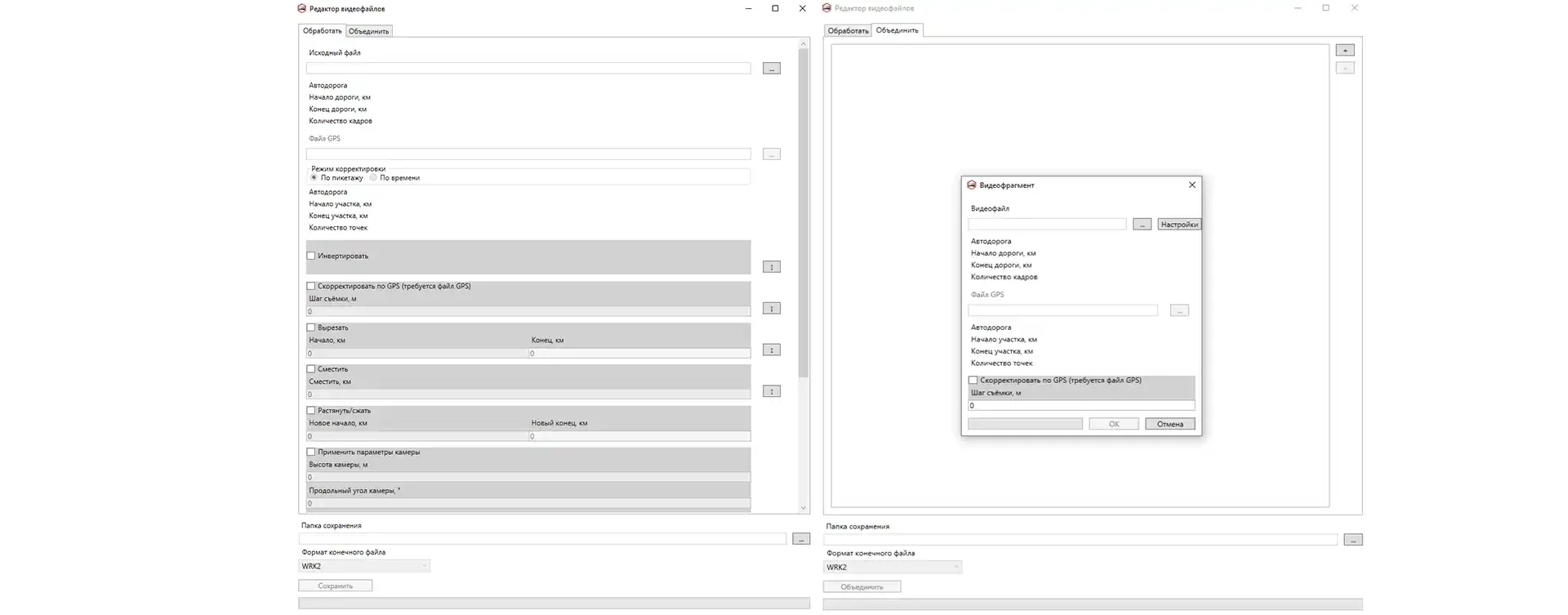 • Редактировать сам видеофрагмент - инвертировать, вырезать, смещать, растягивать/сжимать и объединять несколько видеопроездов в один общий, при этом корректируя географическую привязку кадров по эталонному GPS-треку