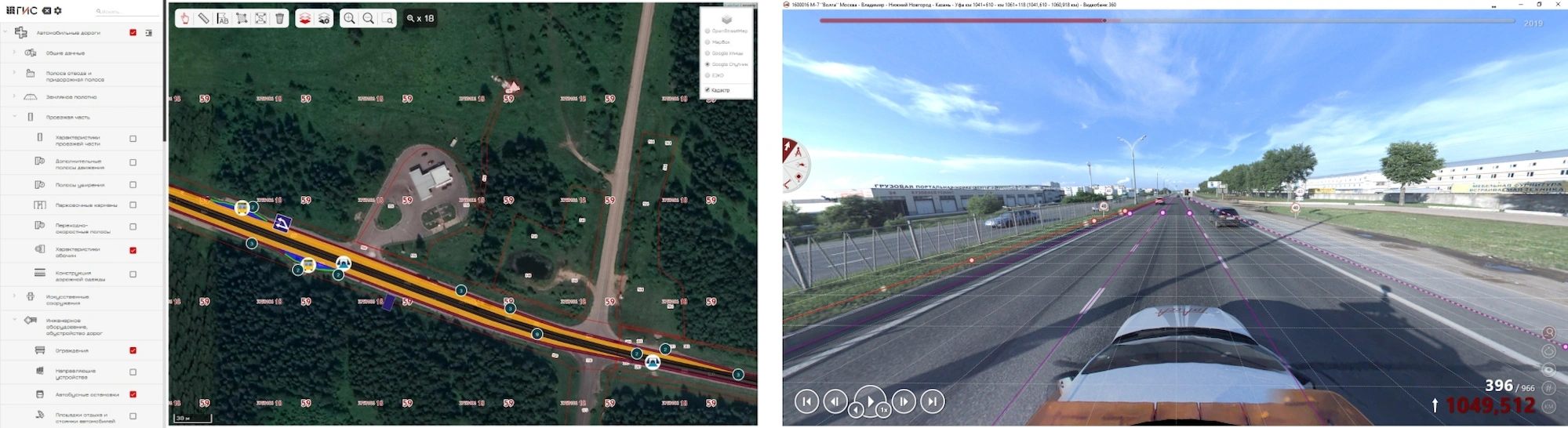 | Видеосъемка автомобильных дорог | Система панорамной видеосъемки 3-мя камерами с разверткой 180 град. Система бесшовной сферической видеосъемки с углом захвата 360 град. | Для дорог c шириной проезжей части до 10 м – один видеопроезд. Для дорог с шириной проезжей части более 10 м – проезд в прямом и обратном направлениях. | |
