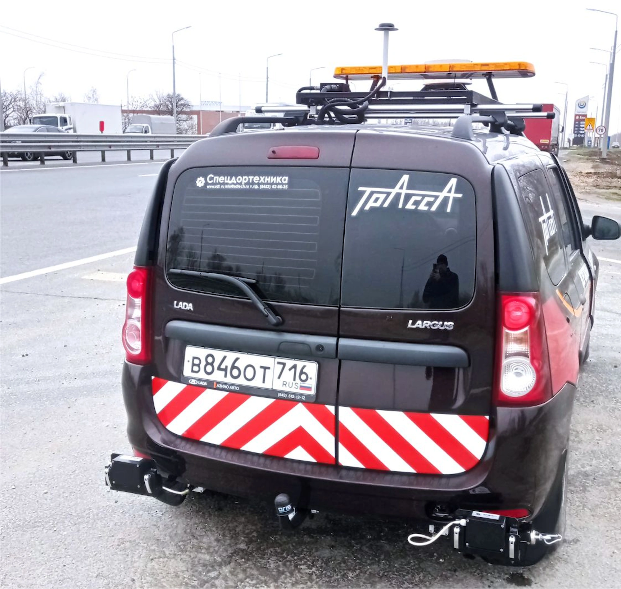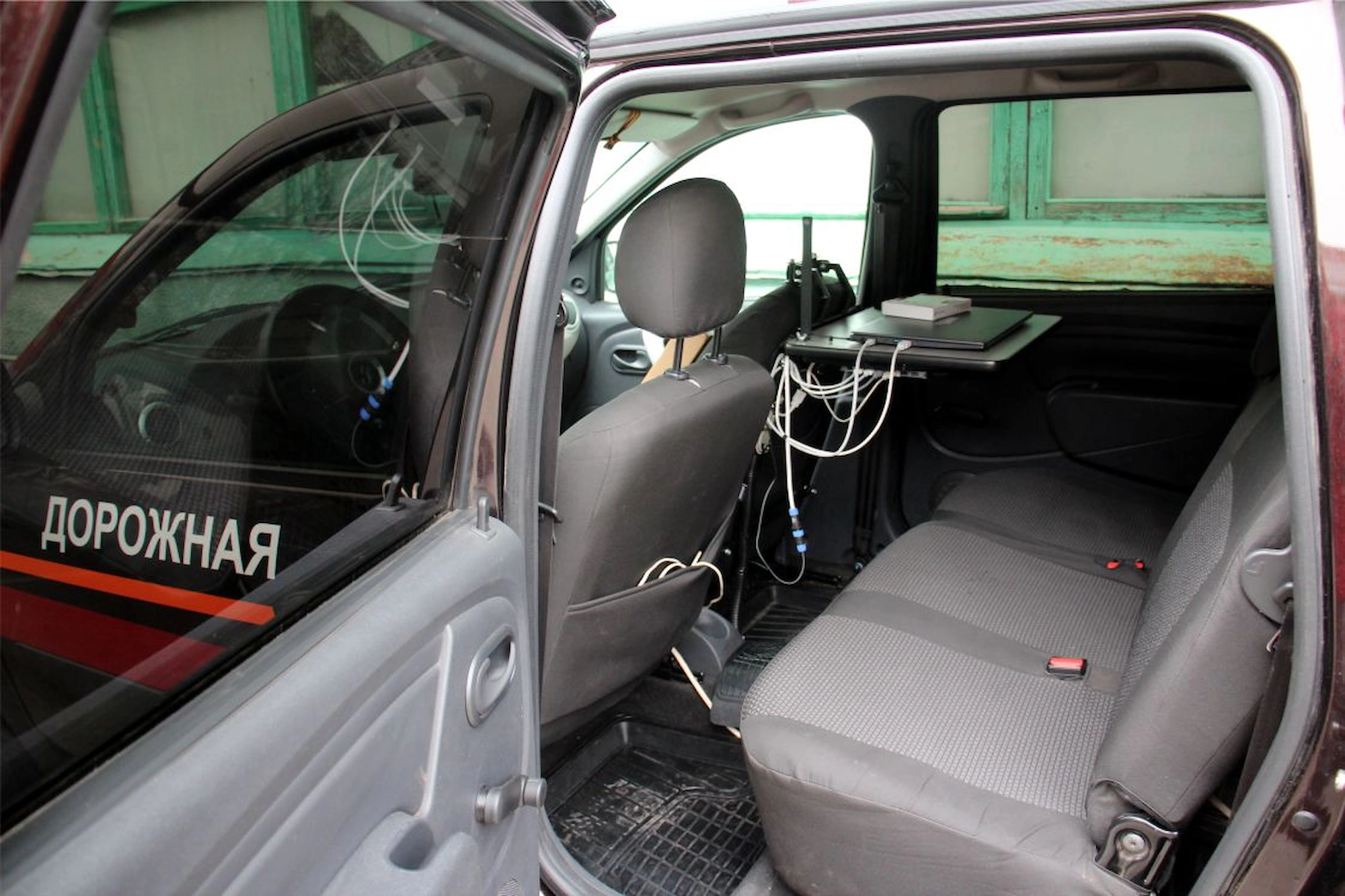 Лаборатория на базе автомобиля Лада Ларгус оснащена системой панорамной видеосъемки автомобильных дорог, которая позволяет проводить съемку с углом захвата 180º. Система выполнена на основе 3-х отдельных камер Dalsa в индивидуальном кожухе.