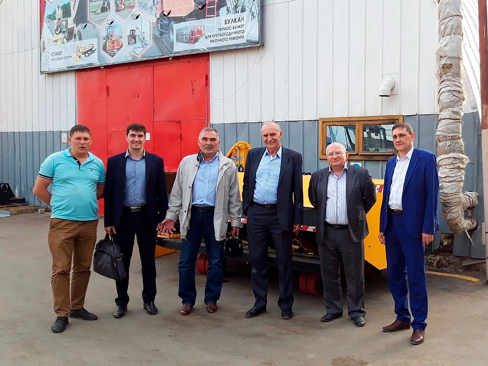 На третьей территории («Алмаз») начальник отдела Тупиков А.В. ознакомил с производством оборудования для работ по ремонту и содержанию дорог. Были показаны в действии термос-бункер «Вулкан», для ямочного ремонта асфальто-бетонных покрытий дорог, отсыпщик обочин «Стакер», навесные манипуляторы на трактор «Стриж» и снегоуборщики «Буран», представил работников КБ по разработке дорожной техники.