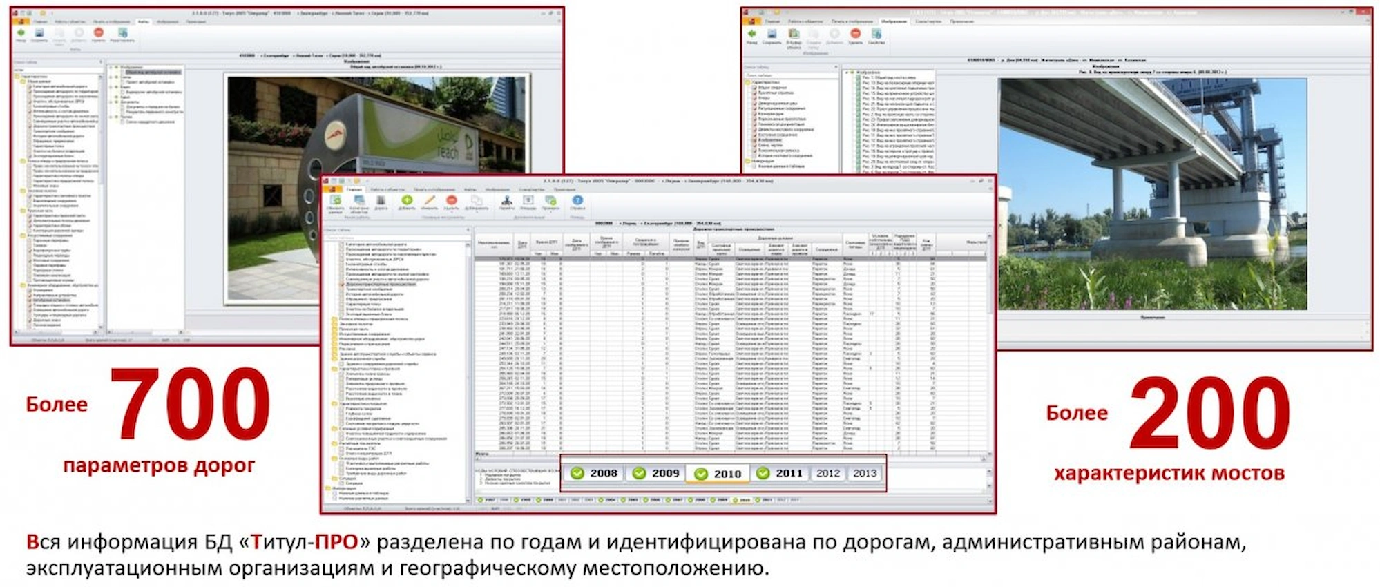ГИС «Титул-2005» динамично развивающаяся информационная система, учитывающая все изменения в Российском законодательстве. Разработанный в 2019 году WEB-портал позволяет органам управления дорожного хозяйства в онлайн режиме с использованием электронных карт информировать всех пользователей дорог о текущем состоянии автомобильных дорог и искусственных сооружений, отображать участки ремонта, гарантийные участки, а в случае наполненной с учетом определения высокоточных координат базы данных – отображать все придорожные объекты с интерактивной информацией по каждому.