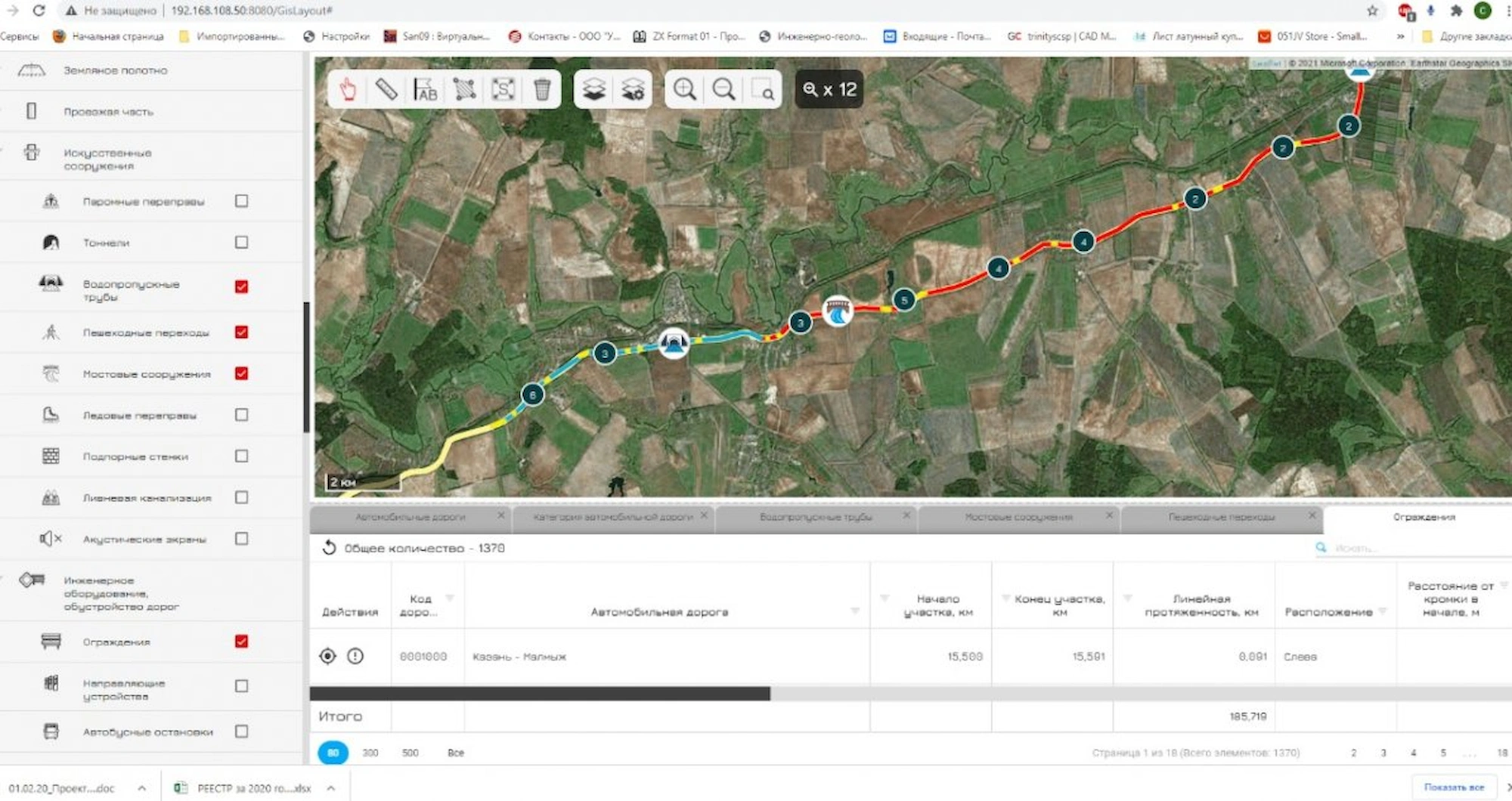 Помимо стандартных инженерных задач по диагностике, паспортизации дорог и сооружений, разработке проектов ОДД, учету и анализу ДТП, ведению видеобазы дорог в ГКУ «Главтатдортранс» установлено программное обеспечение, позволяющее решать аналитические и управленческие задачи по сети дорог Республики Татарстан, автоматизировано формировать более 120 отчетных ведомостей и выполнять работы по созданию геоинформационной системы на основе работ по диагностике и паспортизации дорог.