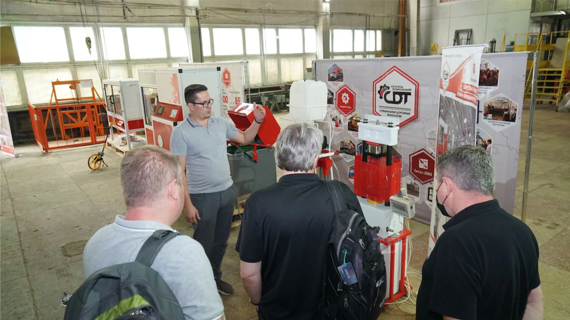 В перерыве после обеда Жилин С.Н., председатель Совета директоров ГК «СДТ», провел экскурсию по выставке дорожной техники и лабораторного оборудования собственного производства. Все могли ознакомится с новыми моделями и их технологическими качествами.