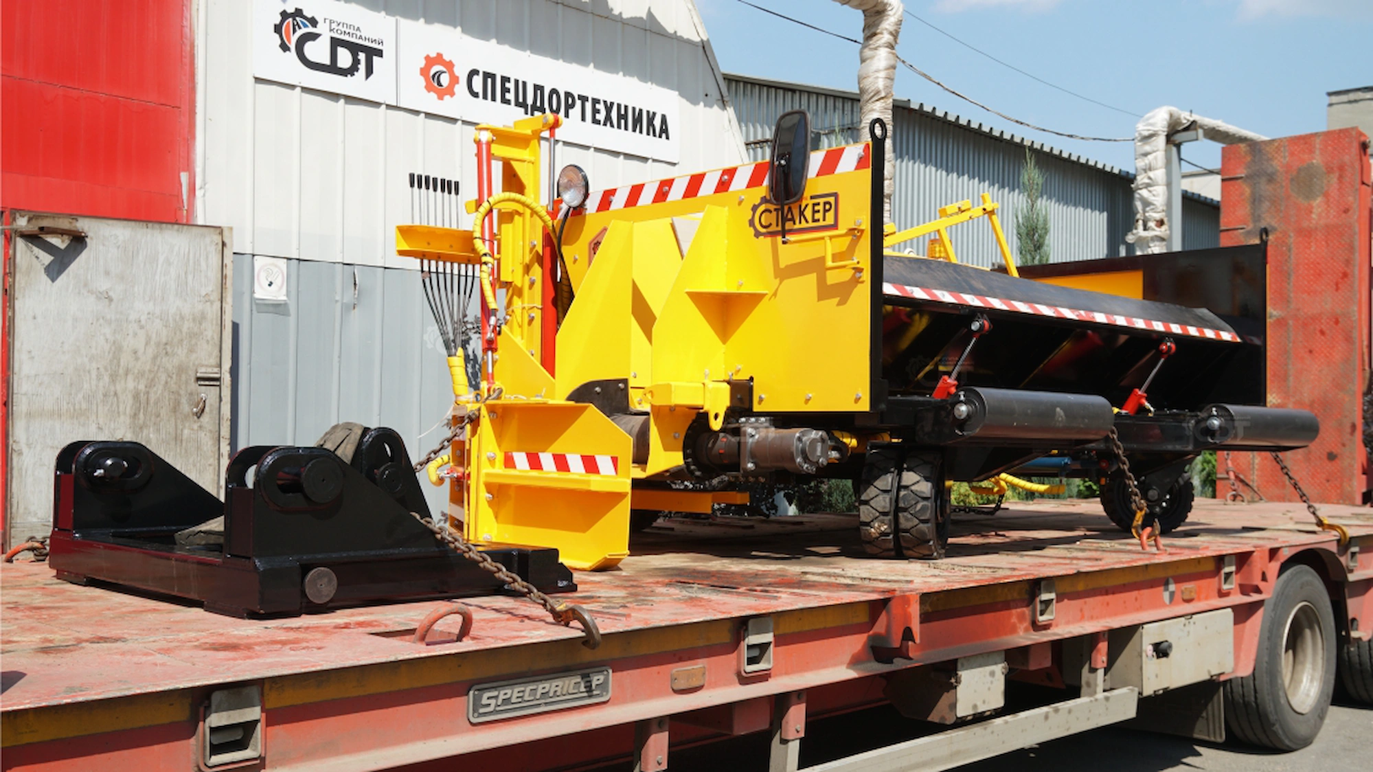 30 июля 2021 г. специалисты Группы компаний «СДТ» погрузили отсыпщик обочин «Стакер» на трал заказчика из г. Костромы.