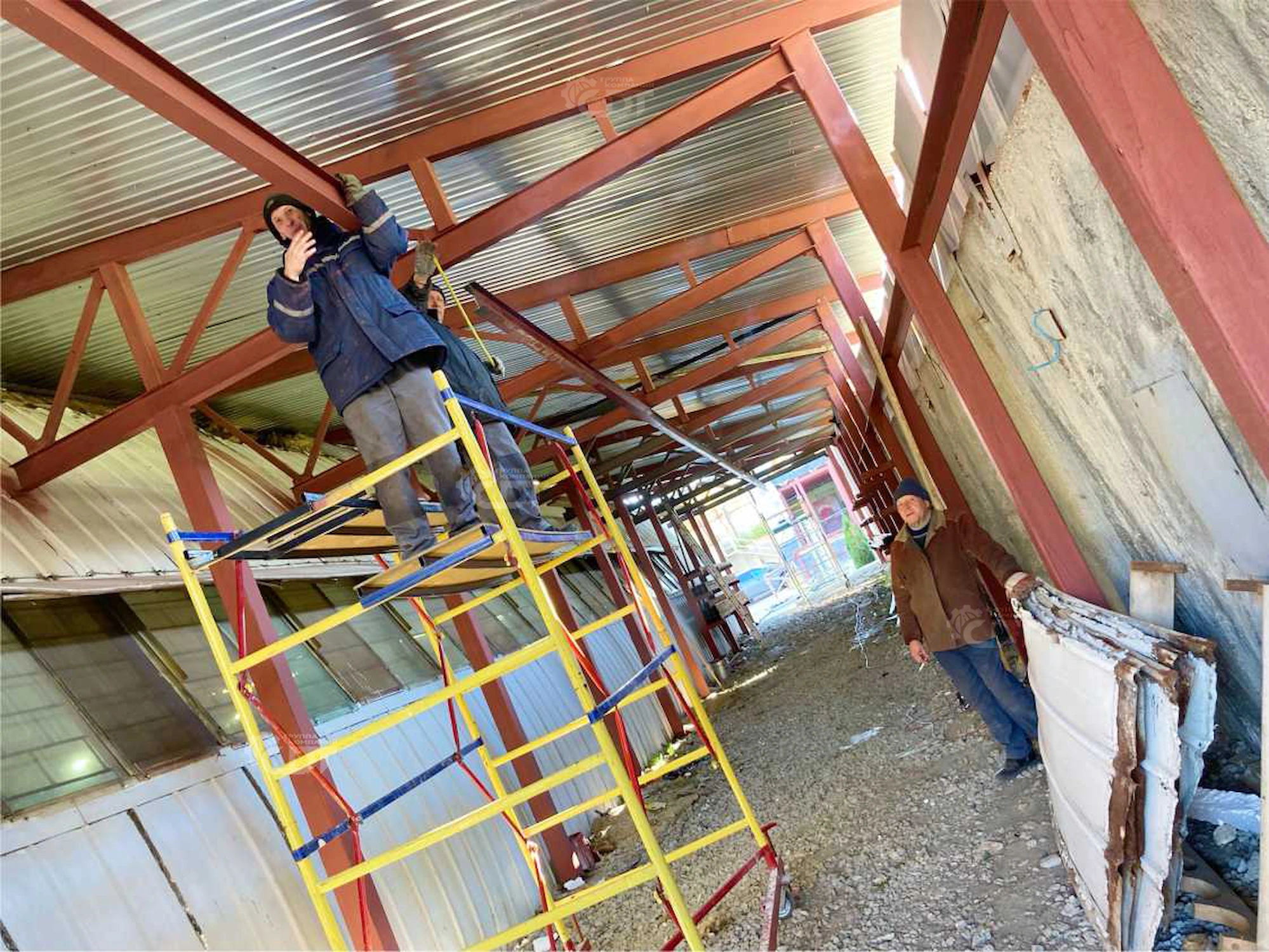 На той же территории возведен навес к ангару для отдела дорожного оборудования. На расширенной закрытой площади планируется организовать склад металла (прокат), участок гидравлики, склад готовой продукции. Установлено подвесное грузоподъёмное устройство (тельфер).