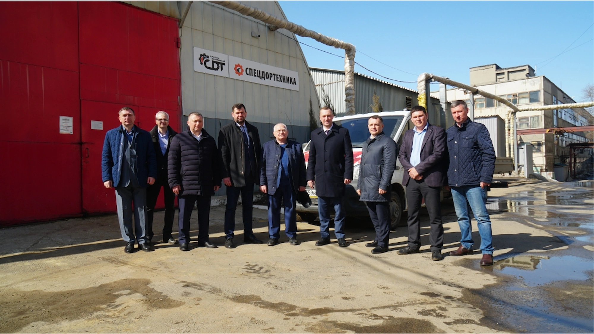 29 марта 2022 г. делегация во главе с председателем правительства области вице-губернатором Бусаргиным Р.В. посетила завод ООО «Спецдортехника» (ГК «СДТ»)