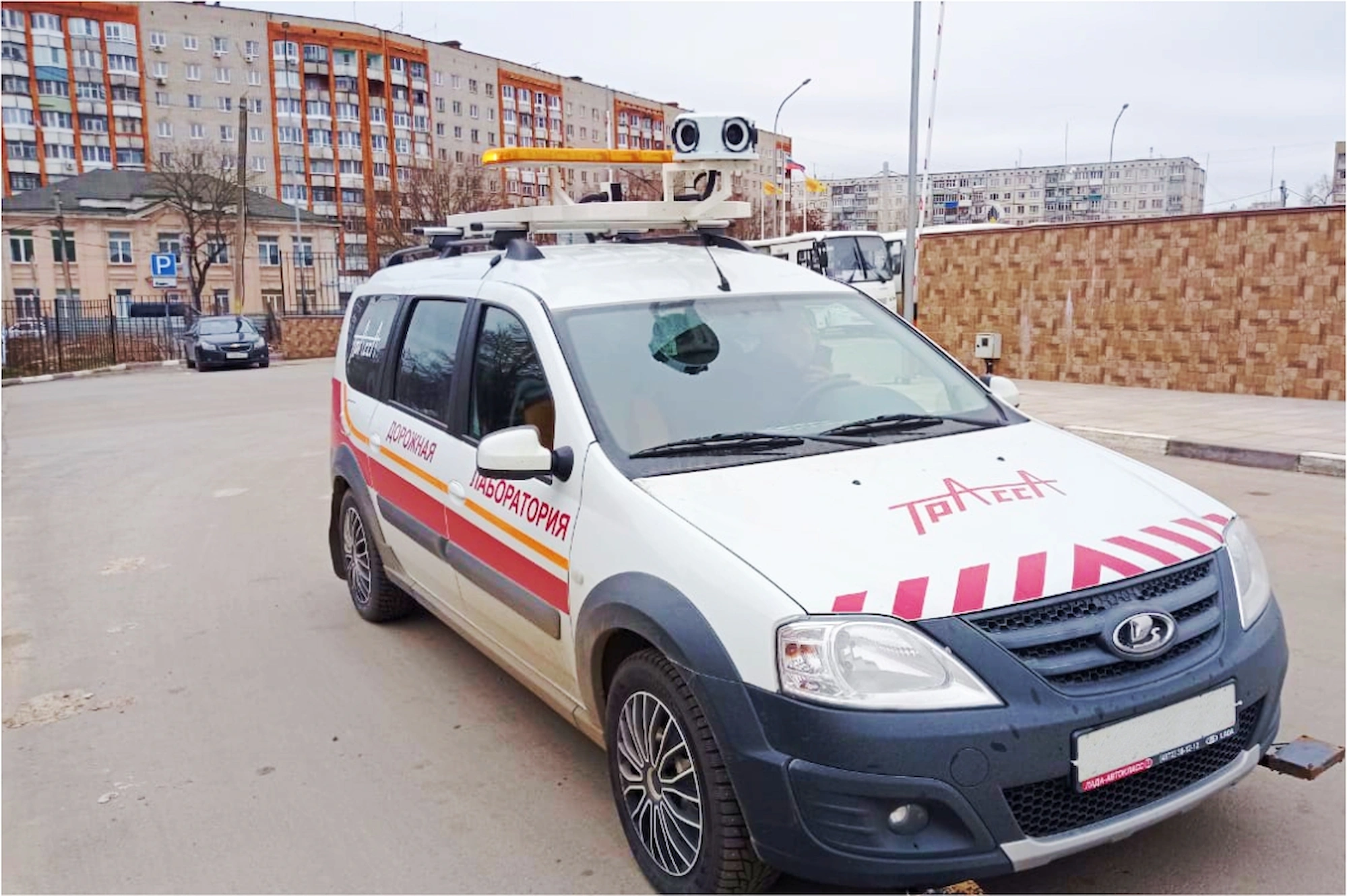 В рамках модернизации специалисты ГК «СДТ» перенесли измерительные системы с автомобиля Fiat на базовое шасси Lada Largus и установили новую панорамную видеокамеру, обеспечивающую получение изображения с углом захвата 180° для фиксации состояния покрытия и инженерного оборудования дорог, с определением линейных и площадных размеров.
