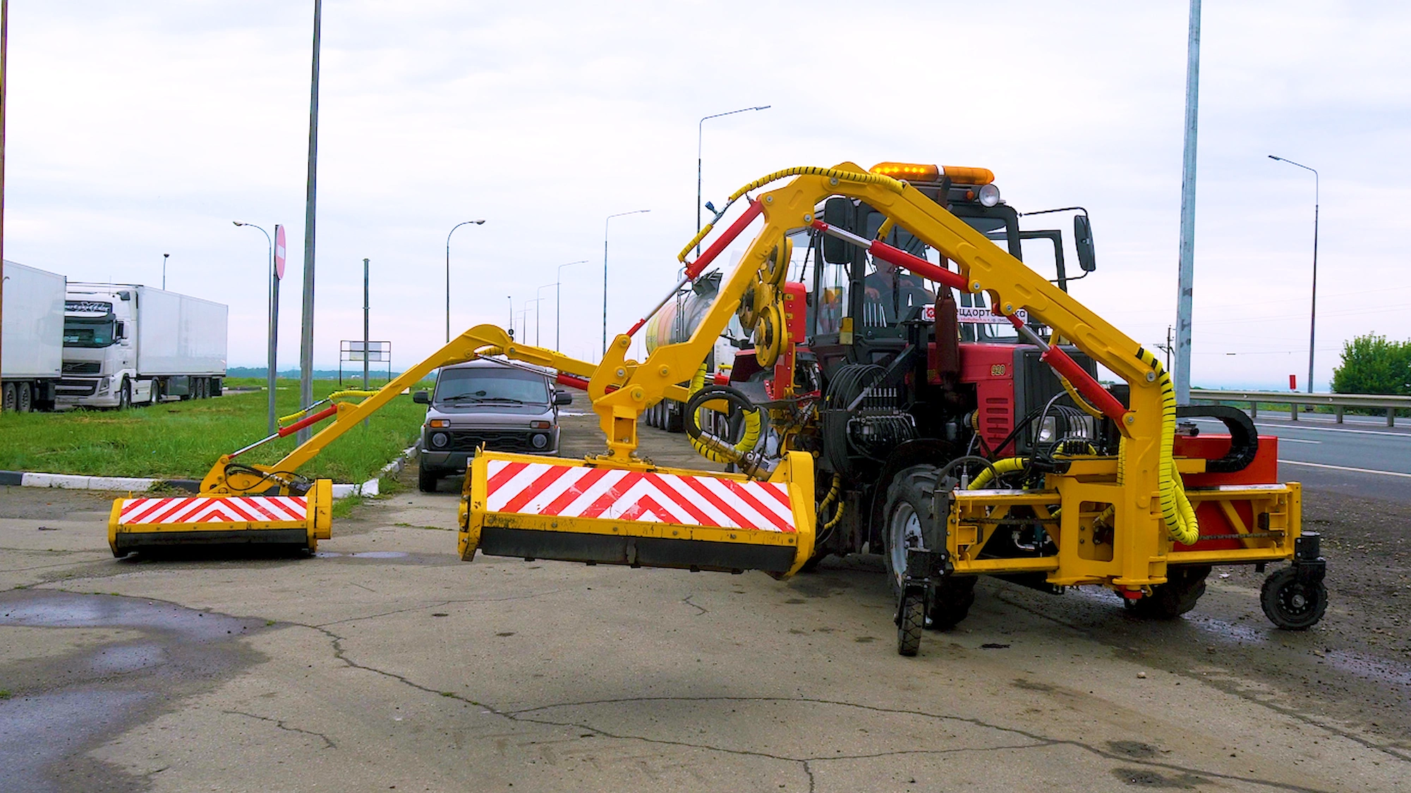 На тракторе МТЗ-82 были представлены манипулятор на задней навеске «Стриж-1», манипулятор «Стриж-3» на передней навеске и косилка «Спинер» для работы под барьерными ограждениями.