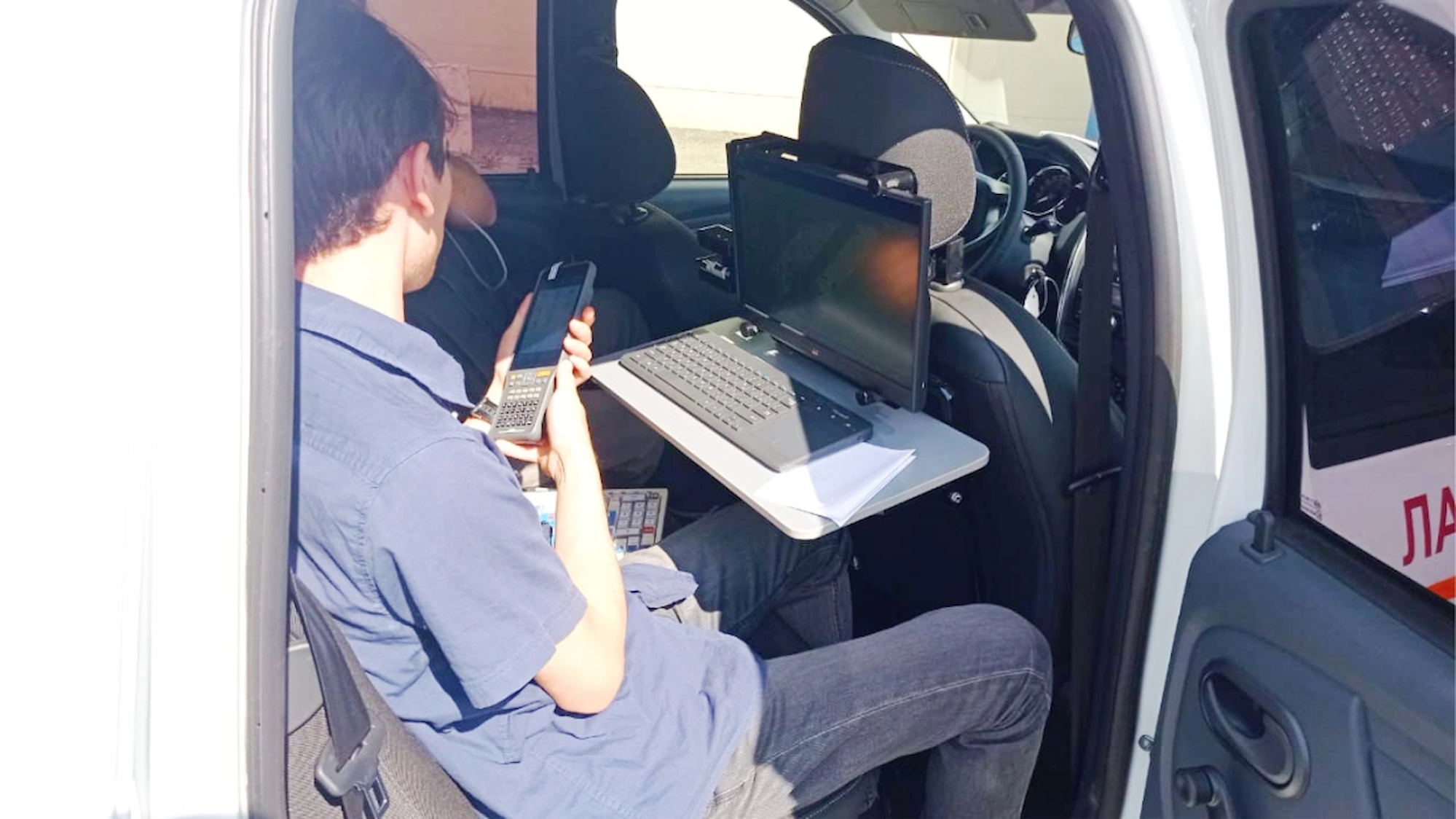 В состав лаборатории входит мобильный комплект для обследования и паспортизации автомобильных дорог путем сбора данных о дорогах и дорожных объектах и их характеристик в виде электронного полевого журнала.