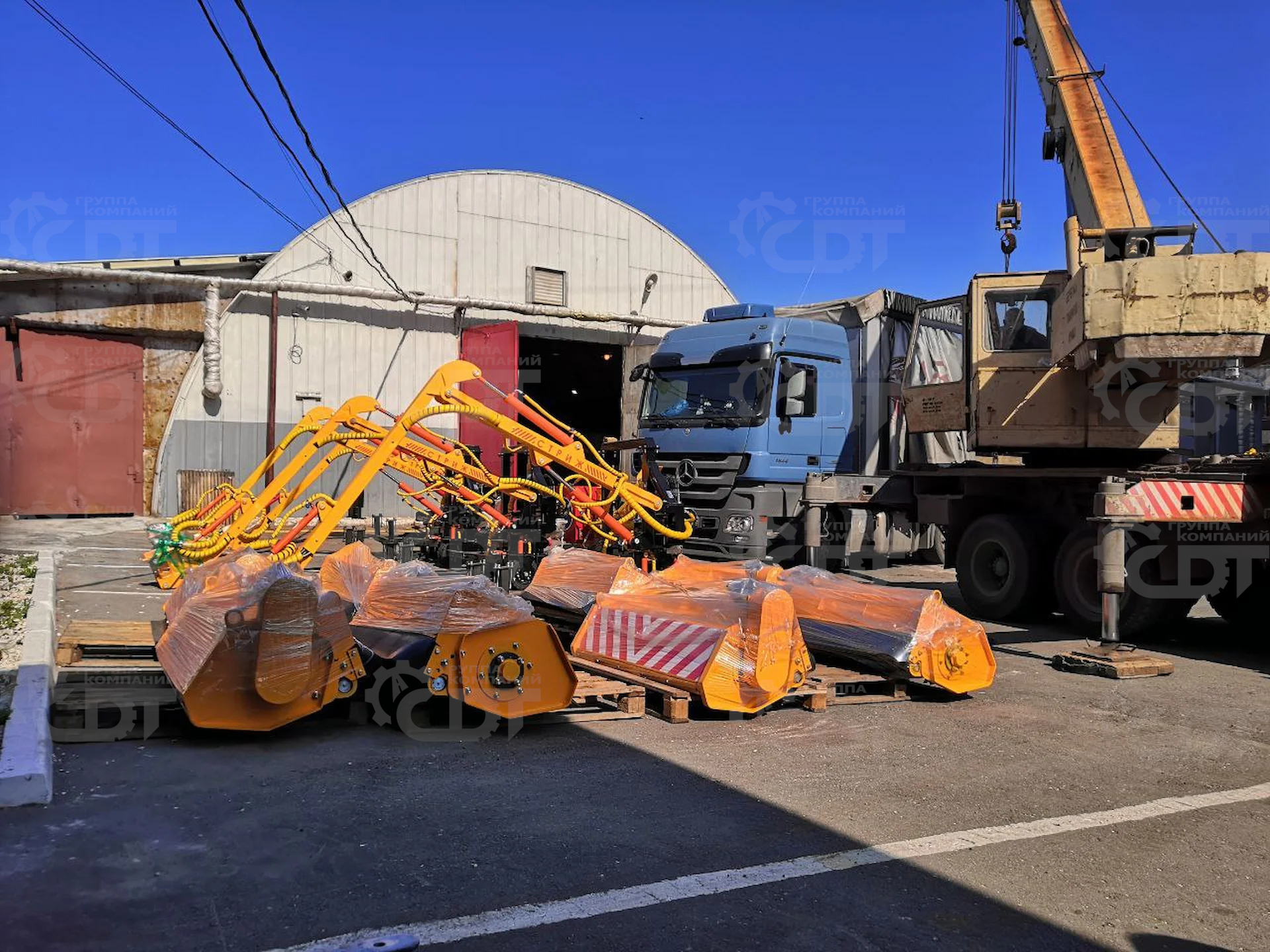 Также передан Заказчику из г. Иркутска навесной манипулятор на передней навеске "СТРИЖ-3" в количестве 4 штук, в комплектации с рабочим органом косилка мульчер в количестве 8 штук.