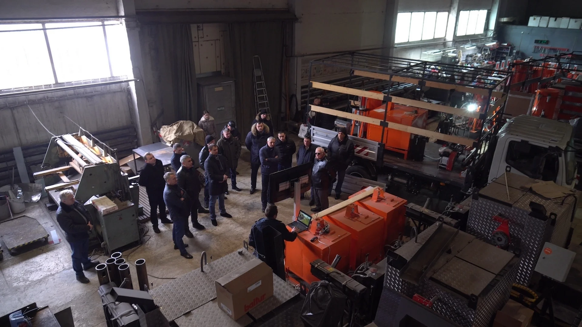 После демонстрации работы оборудования участники совещания были приглашены в цех по производству оборудования ГК «СДТ», где ознакомились с процессом создания разметочных машин и готовым разметочным оборудованием. Также председатель совета директоров ГК «СДТ» Сергей Николаевич Жилин представил собравшимся материал по всей линейке производимой дорожно-эксплуатационной техники и оборудования. Особый интерес участники проявили к навесным манипуляторам "СТРИЖ" со сменными рабочими органами, предназначенные для скашивания травы, уборки снега на обочинах, откосах дорог и под барьерным ограждением, а также Термос-бункеру "ВУЛКАН" для ямочного ремонта покрытий автомобильных дорог зимой литым асфальтобетоном и летом горячей а/б смесью.