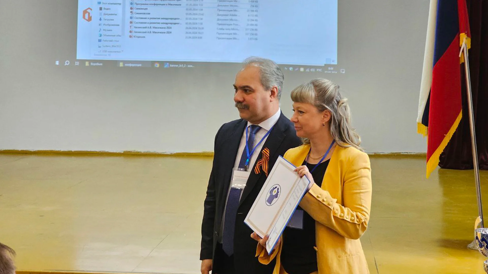 Директор Департамента экономического сотрудничества Исполнительного комитета СНГ Мыскин Михаил Евгеньевич вручил грамоту СНГ Оксане Михайловне Жилиной «за плодотворный и многолетний труд в автодорожной отрасли и укрепление дружбы и сотрудничества государств – участников СНГ».