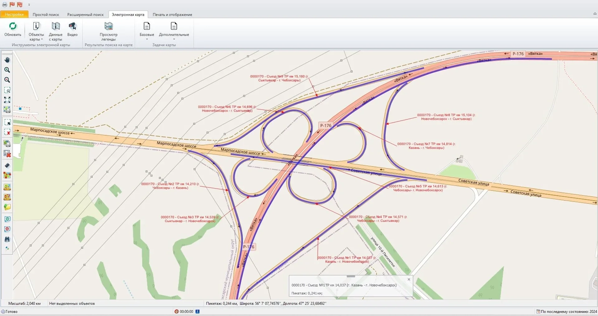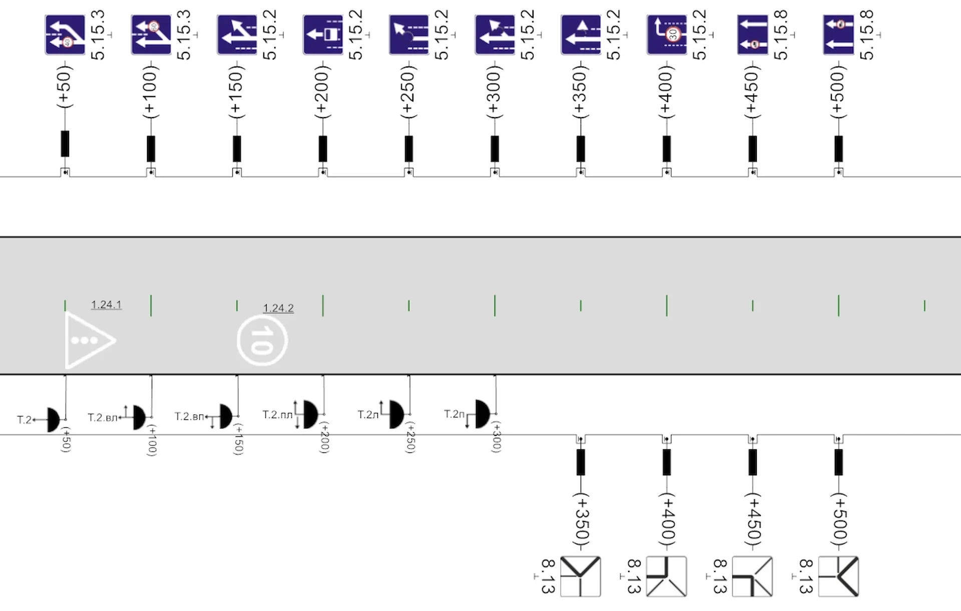 3. «Проектирование схем дислокации ТС ОДД» (10300) - сделали корректировку в отрисовке сложных ситуаций, связанных с разделительными полосами, обочинами и характеристиками проезжей части в целом. Добавили новые типы технологического оборудования, новые светофоры, новые дорожные знаки, а также добавили настройки по их отображению на схеме дислокации. Доработали расширенный экспорт, добавив недостающие ведомости в список для формирования. Исправили некоторые ошибки по отрисовке освещения и направляющих устройств, а также доработали автоматизацию «Расчёт типоразмера основных знаков». Внедрили новые знаки, разметку и некоторые настройки для ведомостей, в частности настройку «Разбивать по населённым пунктам» и «Сокращать нули у значений» для ведомости Разметки. Исправили проблему с отрисовкой дорожных знаков, принадлежащих к станциям технического обслуживания.