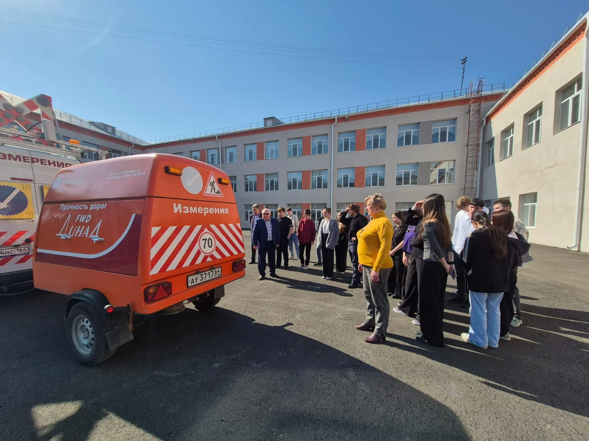 В ходе встречи была представлена общая информация о деятельности предприятий Группы компаний "СДТ", выпускаемой продукции и процессов производства с демонстрацией видеороликов. На площадке перед МОУ «СОШ №102» завод ГК «СДТ» представил также передвижную дорожную лабораторию «ТРАССА-2» с установкой «ДИНА-4». Школьники узнали о многолетнем сотрудничестве СГТУ им. Ю.А. Гагарина и ГК «Современные дорожные технологии», а также о работе Малого инновационного предприятия «ТехноМаш».