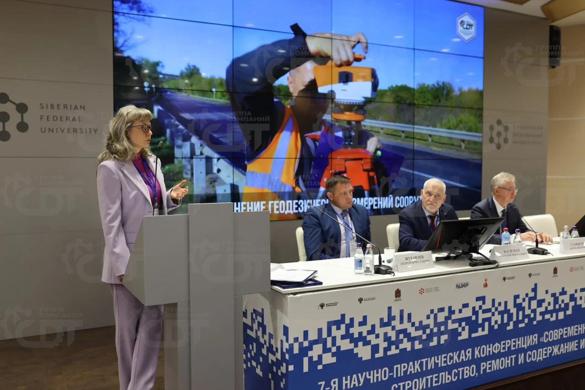 В работе конференции приняли участие руководители дорожных департаментов, представители Росавтодора, проректор Сибирского федерального университета Руслан Барышев, руководители органов управления автомобильными дорогами и предприятий-производителей современной техники и материалов. Группу компаний «Современные дорожные технологии» представляли Николай Жилин и Оксана Жилина с докладом-презентацией «Современные методы и технологии обследования мостовых сооружений» в котором рассказала о методах и технологиях обследования искусственных сооружений, включая новые методы, такие как – лазерное сканирование и аэрофотосъемка с построением ортофотопланов и 3D моделей мостовых объектов. Вел конференцию генеральный директор Ассоциации «РАДОР» Игорь Старыгин.