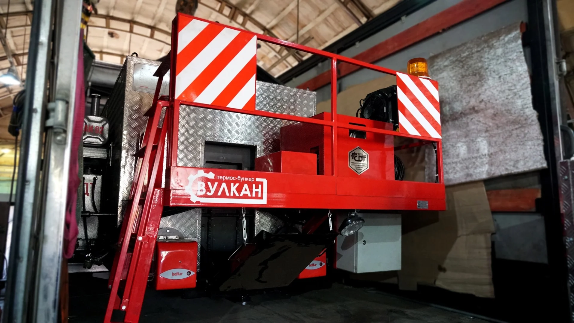 Термос-бункер «Вулкан» с дополнительной опцией «Шнек» предназначен для всесезонного ямочного ремонта асфальтобетонных покрытий автомобильных дорог. Зимой ямочный ремонт выполняется литым асфальтом, а в летний период горячими плотными асфальтобетонными смесями (с использованием «Шнека»)