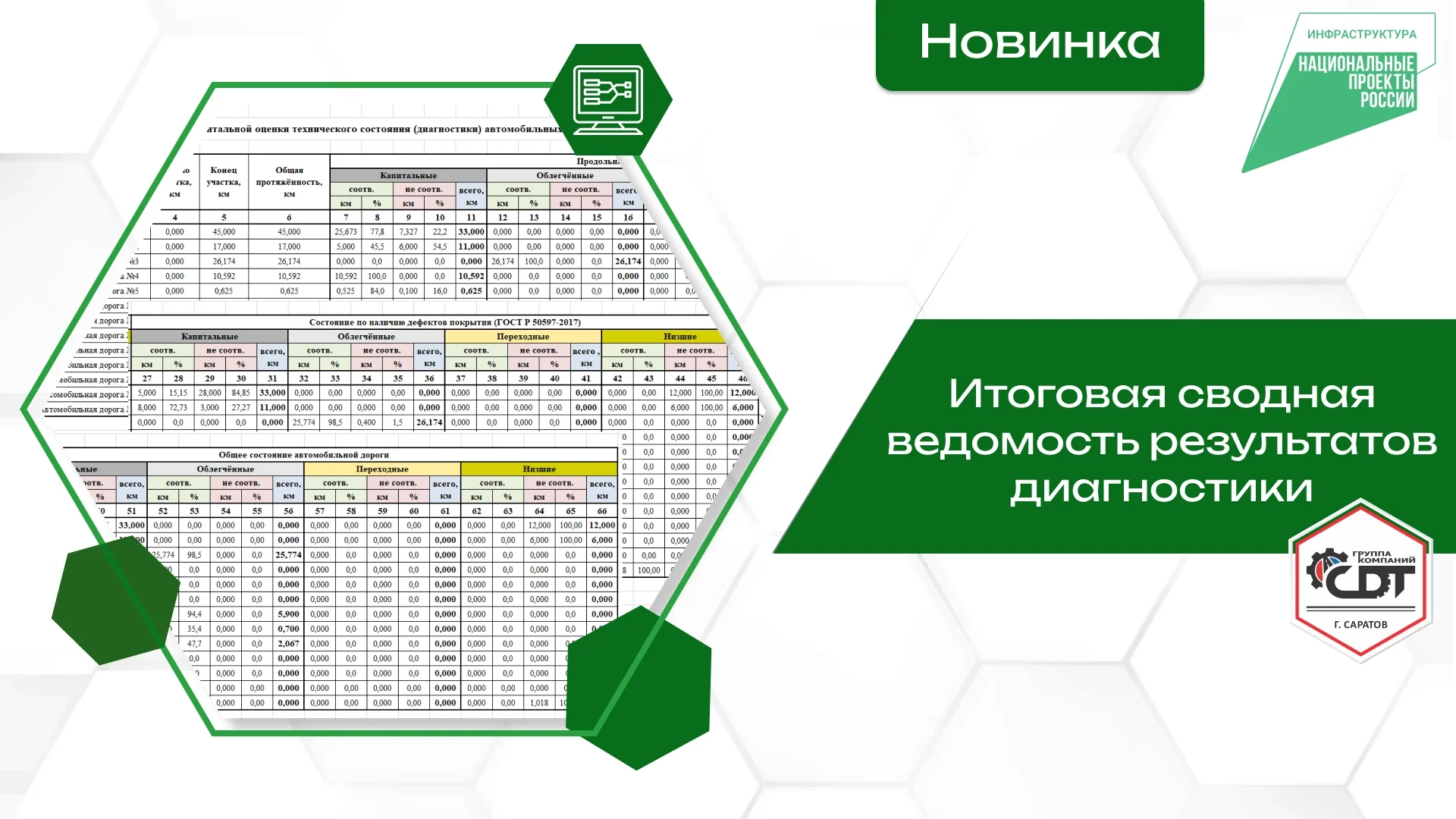 1.Разработали новую форму «Итоговой сводной ведомости результатов инструментальной оценки технического состояния (диагностики) автомобильных дорог», проведённой в рамках реализации национального проекта «Инфраструктура для жизни».