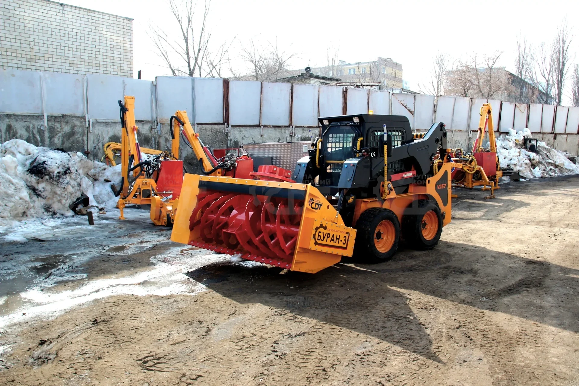 Фронтальный снегоуборщик «БУРАН-3» предназначен для очистки внегородских дорог, автомагистралей и улиц населенных пунктов от слежавшегося и свежевыпавшего снега, а также удаления снежных валов с дорог, образовавшихся при работе бульдозеров и плужных снегоочистителей.