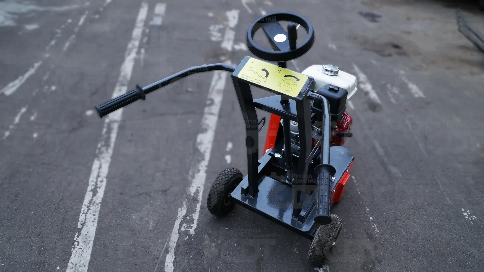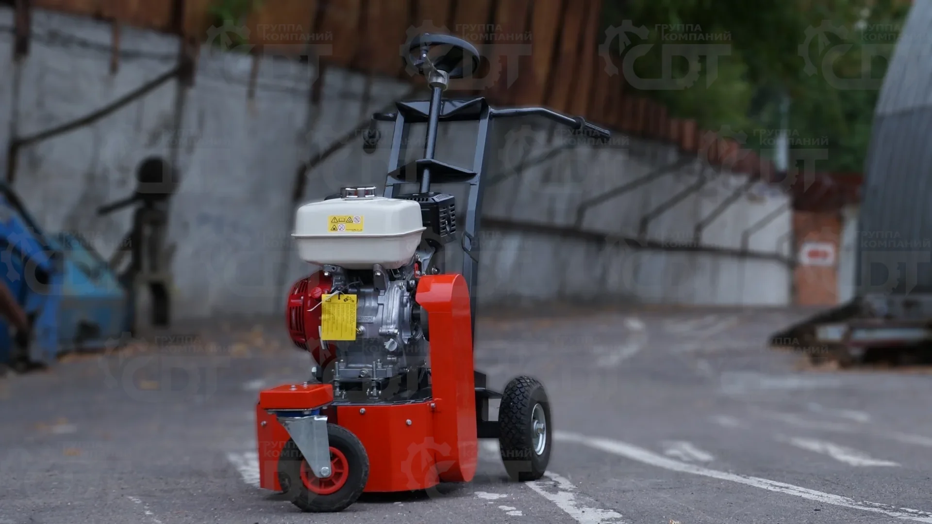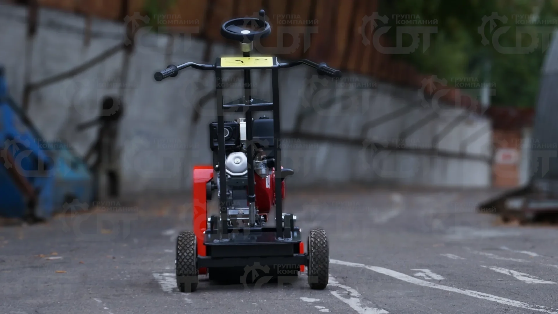 Демаркировщик может комплектоваться сменными рабочими фрезами для краски, термопласта. Для безопасной работы оператора и защиты его от выбросов осколков из-под рабочего органа на установке предусмотрен защитный кожух с брызговиком, который дополнительно служит приспособлением для снижения шума.