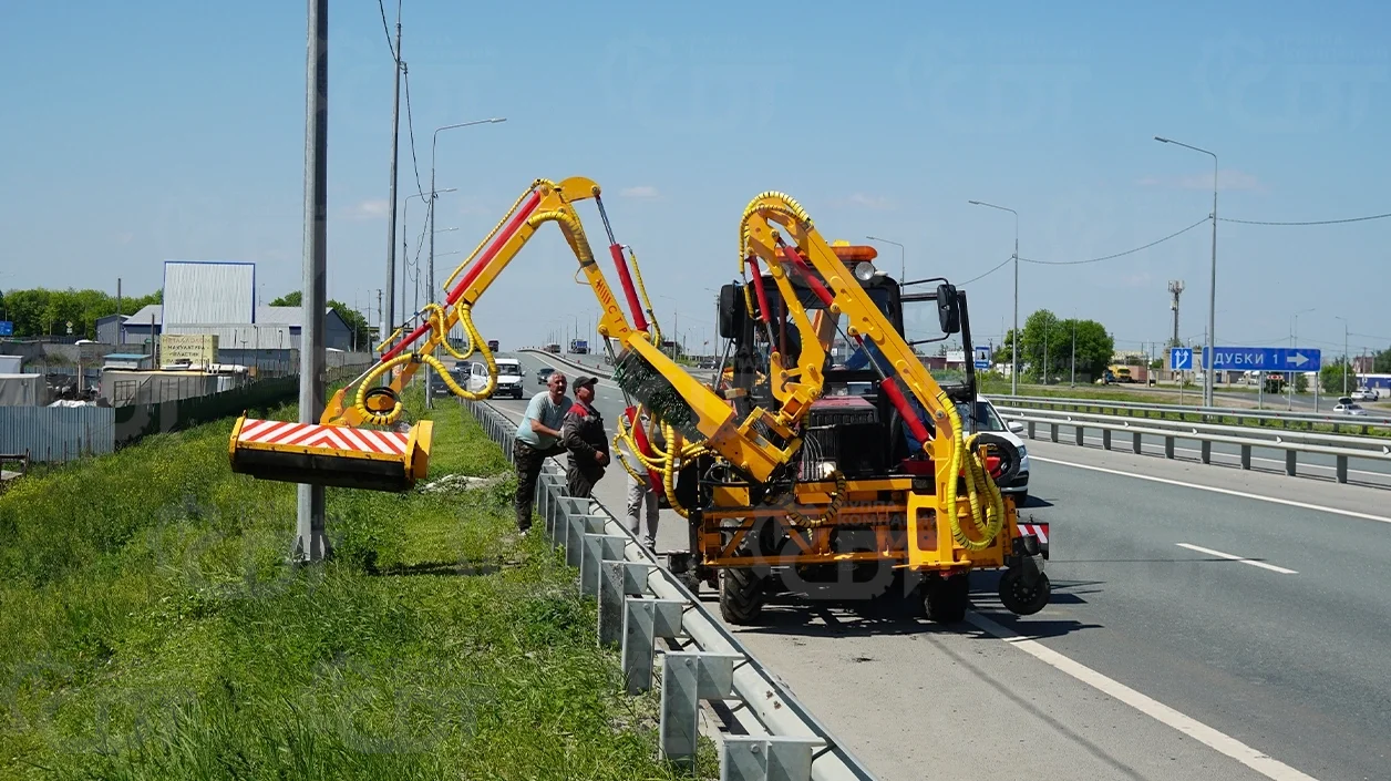Обеспечивает скашивание травянистой растительности и отдельно произрастающей кустарниковой поросли на обочинах, откосах, в кюветах и разделительных полосах автомобильных дорог.