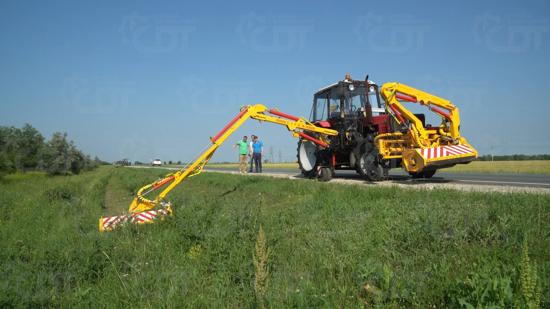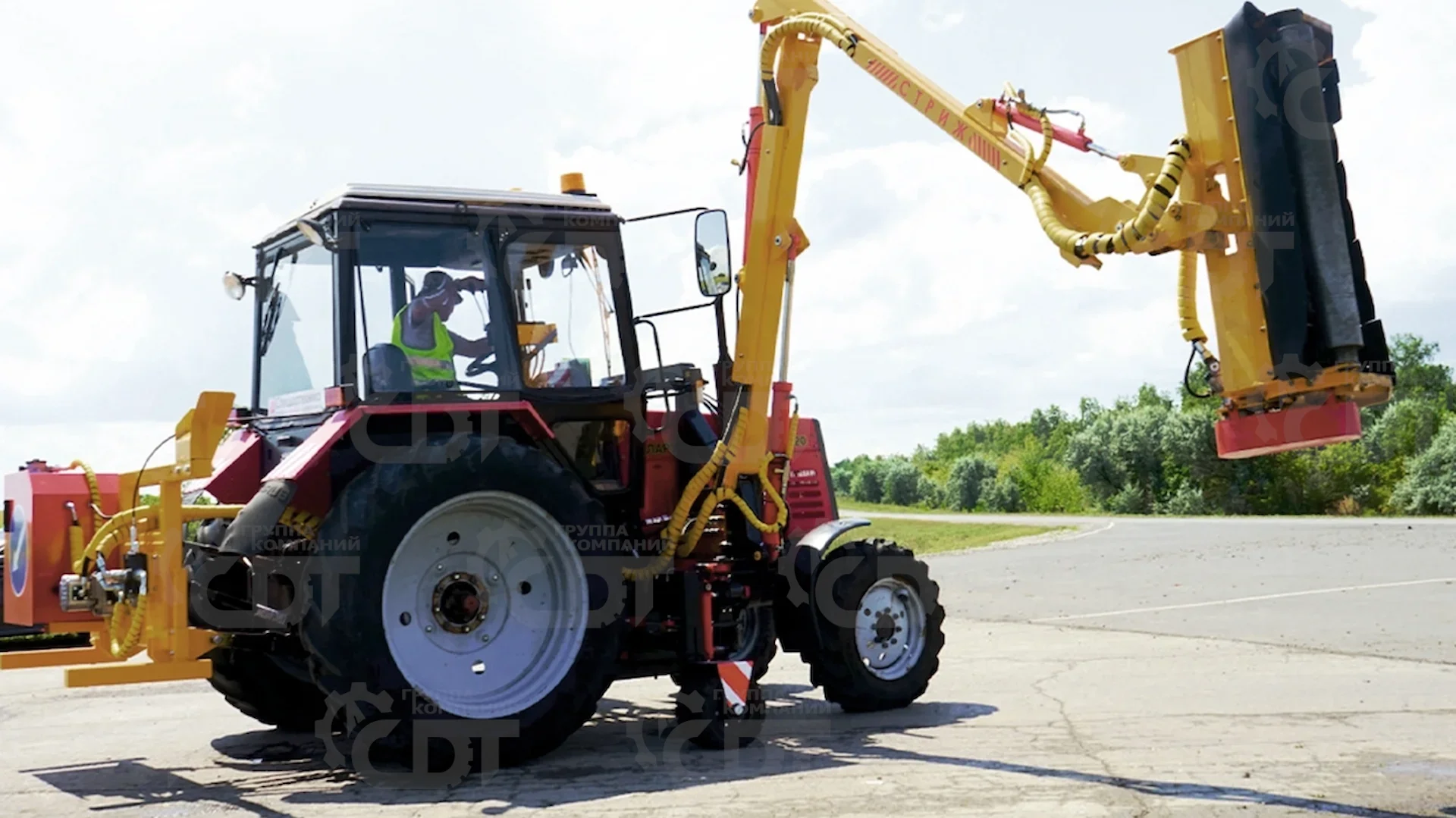 Манипулятор устанавливается между передним и задним колесами трактора на подрамнике. Для обеспечения устойчивости при работе используется выдвигаемое опорное колесо и противовесы. Расстояние от трактора до обрабатываемого участка - до 7 м. Дополнительное оборудование к тракторам МТЗ, Lovol. Сменные рабочие органы поставляются отдельно.