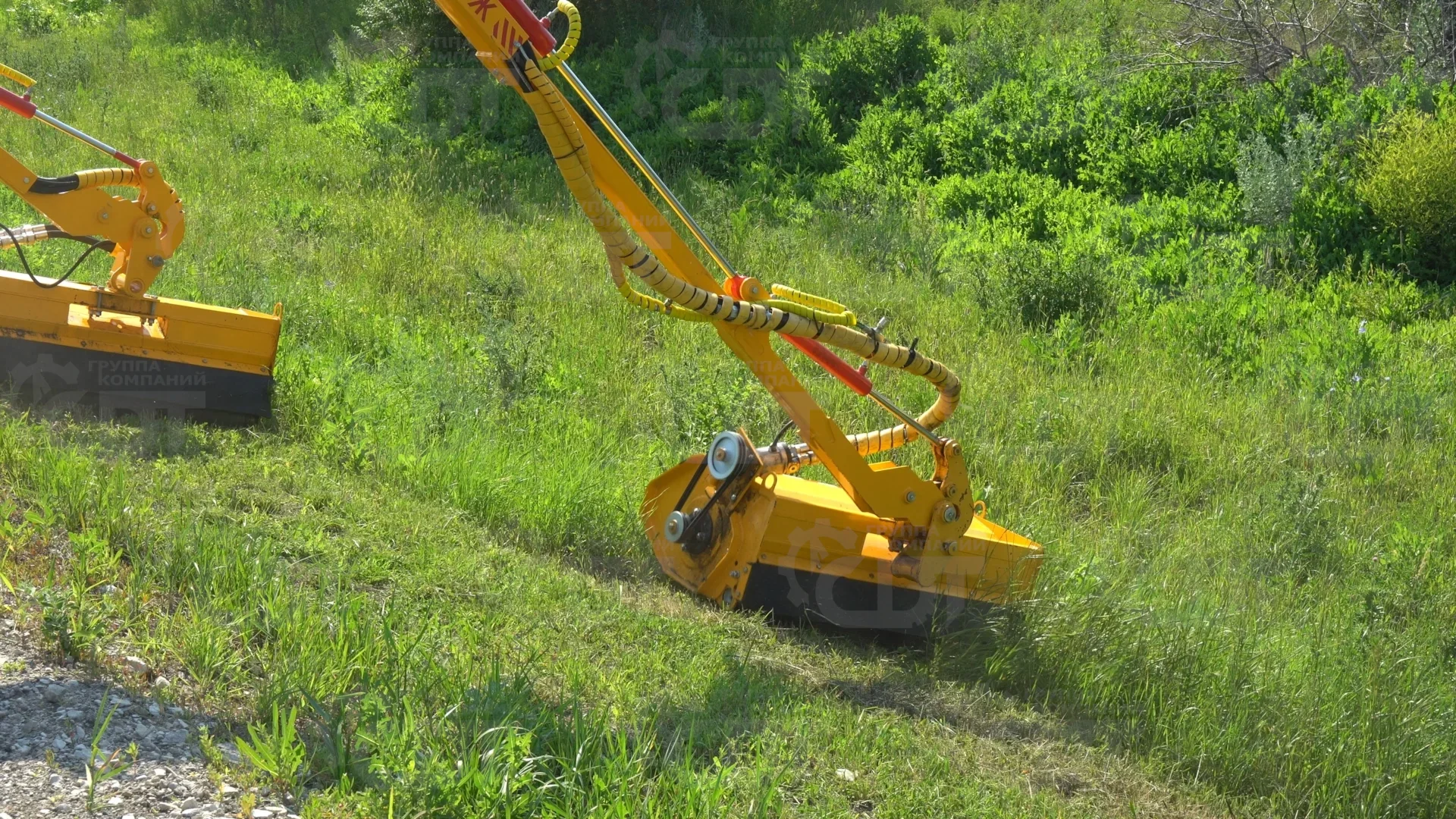 При установке на подрамник винтовой фрезы с гидромотором, снимаются манипулятор, опорное колесо и грузы-противовесы, а гидроцилиндры используются на фрезе для обеспечения ее наклона, опускания и выдвижения;