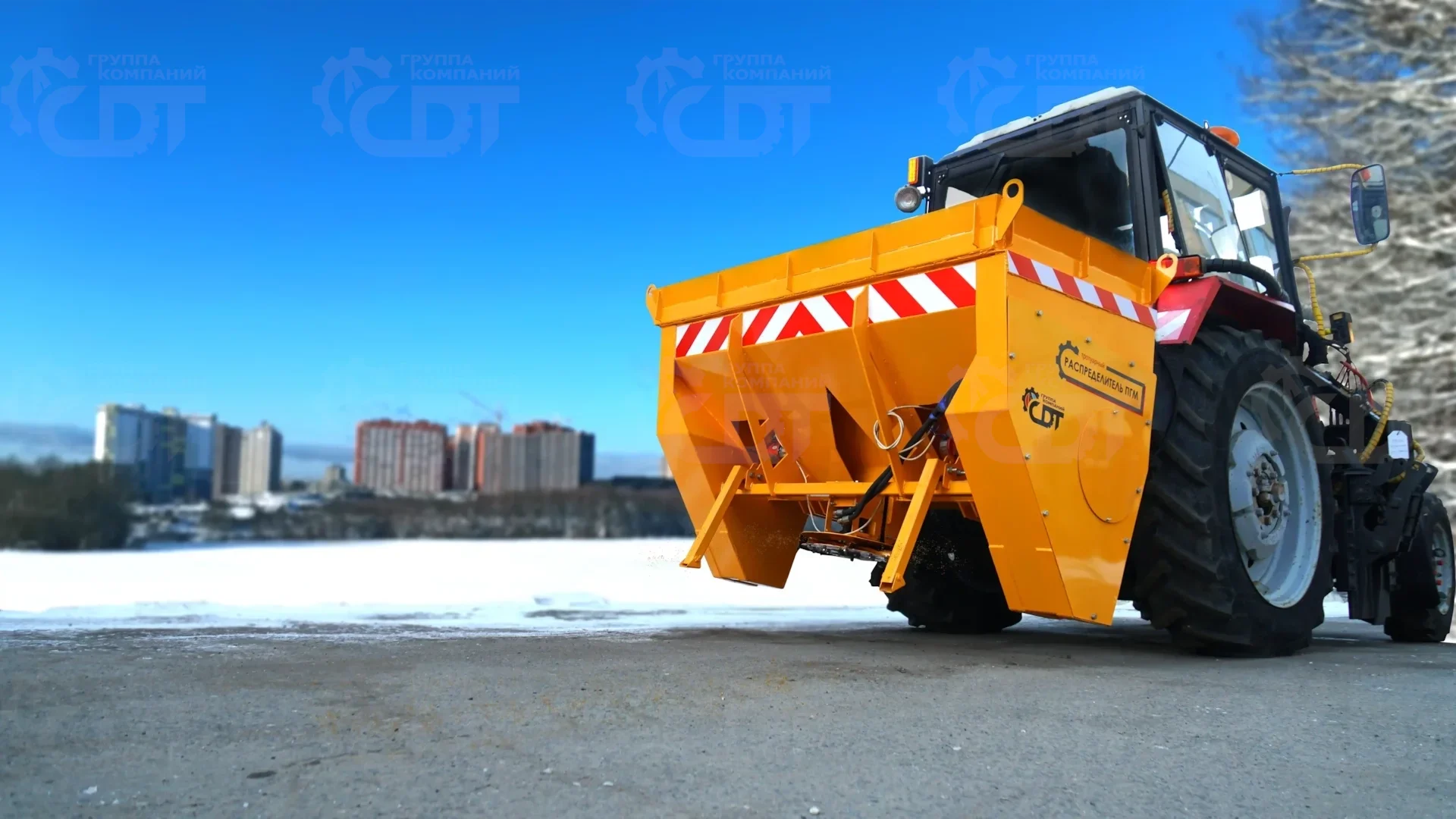 Навесной пескоразбрасыватель для МТЗ и аналогичные модели агрегатируется на трехточечную навеску трактора и интегрируется с его гидравлической системой.