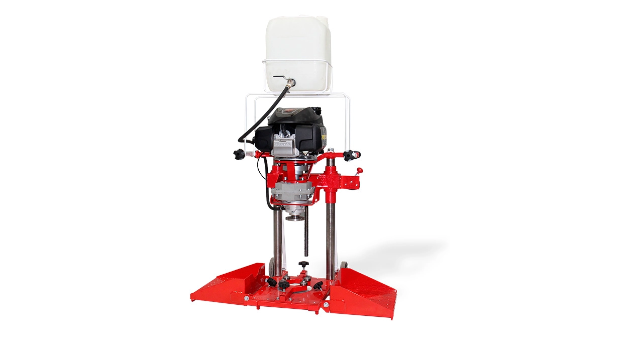 Установка для отбора кернов оснащена 4-х тактным двигателем внутреннего сгорания, системой водополива при бурении и площадками для обеспечения устойчивости.